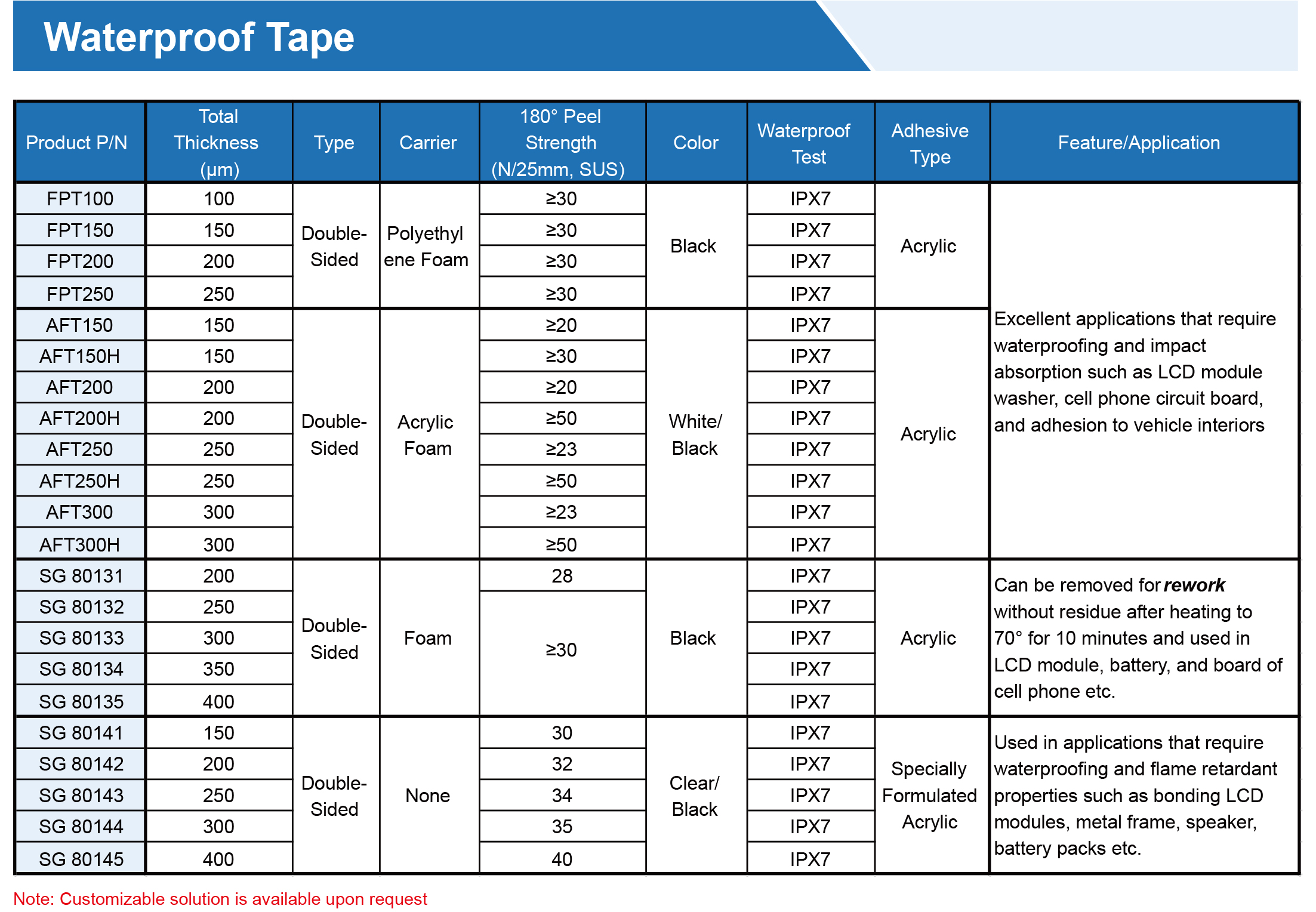 提供各種膠帶,由PET、無(wú)紡布、泡沫、涂有丙烯酸、硅樹(shù)脂、橡膠、熱熔、熱轉(zhuǎn)化粘合劑的PI基材制成??商峁└鞣N寬度、長(zhǎng)度和釋放襯墊,以滿(mǎn)足特定需求,專(zhuān)為工業(yè)、商業(yè)和家庭應(yīng)用的特殊環(huán)境而設(shè)計(jì)。